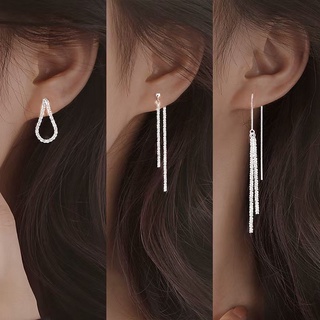 Bông Tai Mạ Bạc 925 Dáng Dài Đính Đá Lấp Lánh Đa Năng Thời Trang Dự Tiệc Cho Nữ