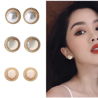 Khuyên Tai Kim Loại S925 Đính Ngọc Trai Đơn Giản Phong Cách retro Pháp Mới