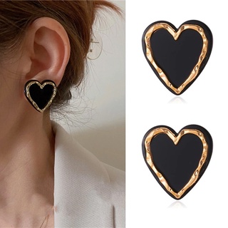 Bông Tai Hình Trái Tim Màu Đen Phong Cách Hàn Quốc Đơn Giản Thời Trang Cho Nữ