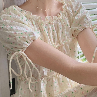 Đầm Ngắn Tay Phồng Cổ Vuông Họa Tiết Hoa Thời Trang Mùa Hè Mới Thanh Lịch Cho Nữ