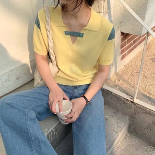 Áo Thun Dệt Kim Tay Ngắn Dáng Rộng Thiết Kế Mới Thời Trang Theo Phong Cách Hàn Quốc