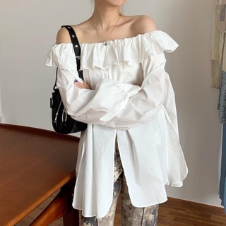Áo Sơ Mi Nữ Dáng Rộng Tay Dài Hở Vai Thiết Kế Xẻ Tà