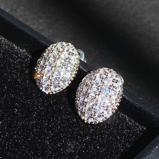 Khuyên Tai Hình Oval Đính Đá Zircon Trắng Phong Cách Đơn Giản Thời Trang Mới Cho Nữ