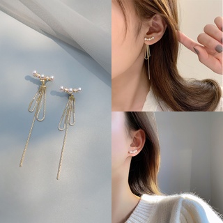 Bông Tai Mạ Bạc 925 Đính Hạt Ngọc Trai Phối Tua Rua Phong Cách Hàn Quốc Thời Trang