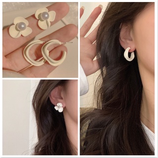 Bông Tai Mạ Bạc 925 Hình Cánh Hoa Trắng Cao Cấp Phong Cách Hàn Quốc