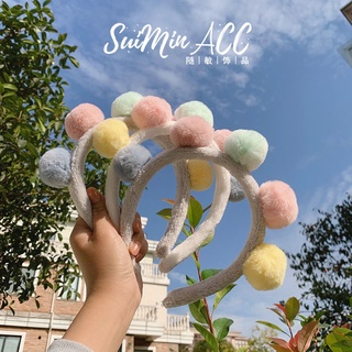 Băng Đô Cài Tóc Bản Rộng Đính Bóng Lông Màu Sắc Phong Cách Hàn Quốc Cho Nữ