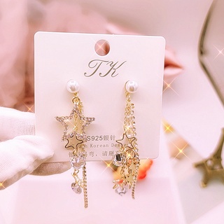 Khuyên Tai Tua Rua Dài Hình Ngôi Sao Năm Cánh Đính Ngọc Trai Sang Trọng Thời Trang Hàn Quốc