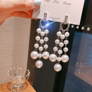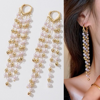 Khuyên Tai Tua Rua Dài Đính Ngọc Trai Sang Trọng Thời Trang Cho Nữ