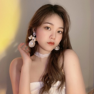 Bông Tai Dáng Dài Phối Nơ Và Ngọc Trai Cỡ Lớn Phong Cách Hàn Quốc Thời Trang Sang Trọng 2022