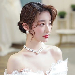 Vòng Cổ Hai Lớp Đính Hạt Ngọc Trai Đơn Giản Phong Cách Vintage Mới