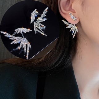 Bông Tai Mạ Bạc 925 Hình Lông Vũ Đính Đá Sang Trọng Phong Cách Hàn Quốc