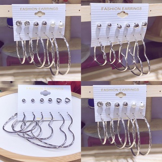 Set 6 Đôi Bông Tai Hình Trái Tim Bằng Bạc Đơn Giản Cho Nữ