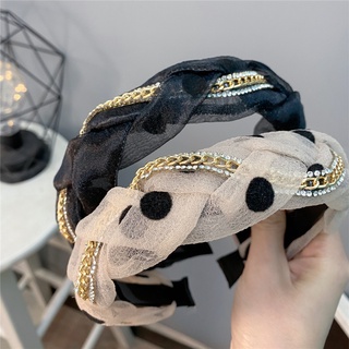 Băng Đô Bện Dây Họa Tiết Chấm Bi Phong Cách Pháp Cổ Điển Dành Cho Nữ