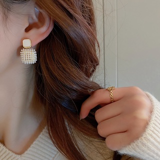 Bông Tai Bạc 925 Hình Vuông Đính Ngọc Trai Phong Cách Hàn Quốc Sang Trọng Thời Trang