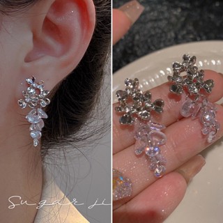Khuyên Tai Tua Rua Dáng Dài Hình Hoa Nho Đính Đá Pha Lê Lấp Lánh Thời Trang Cho Nữ