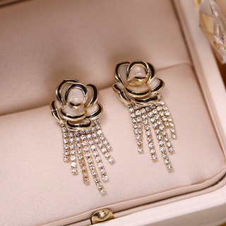 Bông Tai Hình Hoa Đính Đá Zircon Phối Tua Rua Đơn Giản Thời Trang Cho Nữ