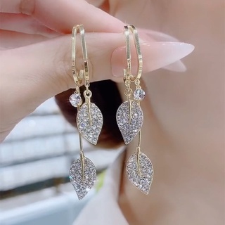 Khuyên Tai Kim Bạc 925 Dáng Dài Mặt Tròn Phối Tua Rua Lá Cây Phong Cách Hàn Quốc Mới Cho Nữ