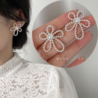 Bông Tai Mạ Bạc 925 Hình Hoa Đính Ngọc Trai Thời Trang Hàn Quốc 2022