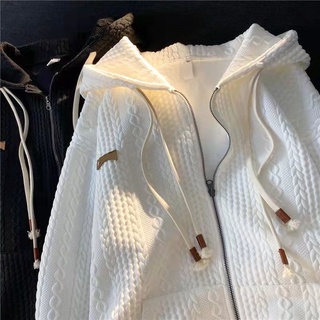 Áo hoodie Khóa Kéo form rộng dập vân thêm Dây Hàn Quốc