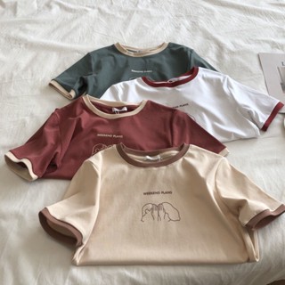 Áo thun dáng ngắn nhiều màu in hình WEEKEND PLANS