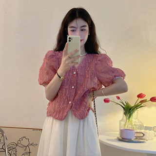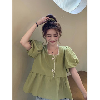 Áo kiểu ngắn tay babydoll cổ vuông tay bồng vintage 3 màu cực xinh
