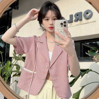 Áo blazer ngắn tay freesize không túi chéo hàn cực xinh