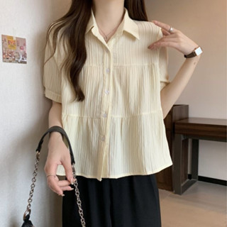 Áo sơ mi ngắn tay polo nhún ngực vintage cực xinh