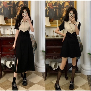 Váy polo dáng xòe khóa ngực bo eo phối màu vintage cực xinh ảnh thật
