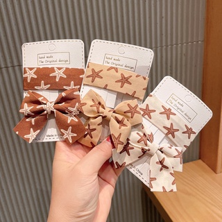 Kẹp tóc bb dáng vuông và nơ buộc làm từ vải họa tiết sao biển bắt mắt