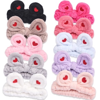 Băng đô vải lông thắt nơ thêu hình trái tim xinh xắn cho nữ khi rửa mặt/tập yoga