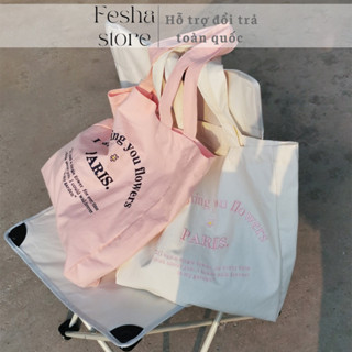 [SẴN] Túi tote thêu chữ nổi Paris Flowers_vừa khổ a4 túi đeo hàng ngày