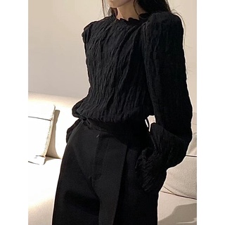 Áo Sơ Mi Tay Dài Dáng Rộng Màu Đen Thời Trang Mùa Thu 2022 Cao Cấp Cho Nữ