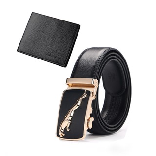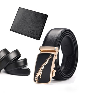 Bộ 3 thắt lưng khóa tự động 2VX vàng bạc và ví da dáng ngang Sep