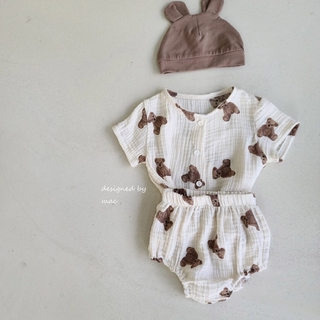 Set Áo Thun Tay Ngắn Hình Gấu + Quần Short Thời Trang Mùa Hè Cho Bé 0-3 Tuổi