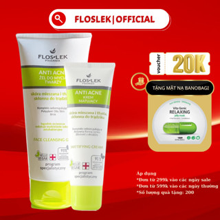 Combo sữa rửa mặt 200ml và kem giảm dầu 50ml Floslek làm sạch - hỗ trợ kiềm dầu tốt cho da mụn - Chính hãng