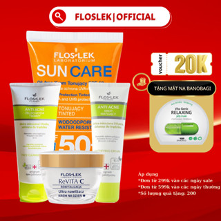 Combo sản phẩm chăm sóc da mụn Floslek hỗ trợ giảm mụn, làm sáng, dưỡng ẩm mịn màng da