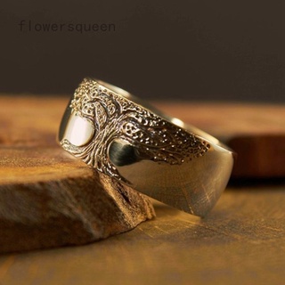 flowersqueen Nhẫn mạ vàng 925 14K hình cây sự sống phong cách Âu Mỹ