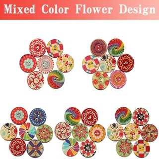 Set 50 Nút Gỗ 2 Lỗ In Họa Tiết Sáng Tạo