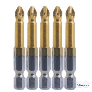 Bộ 5 mũi tua vít PH2 50mm mạ titan trục lục giác 1/4" chống trượt dành cho tua vít điện