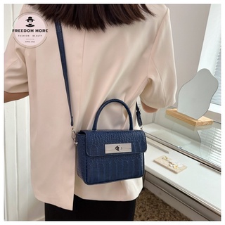 Túi Đeo Chéo Hình Vuông Nhỏ Thiết Kế Phối Khóa Hoa Màu Xanh Dương Phong Cách Xuân Hè Mới 2022