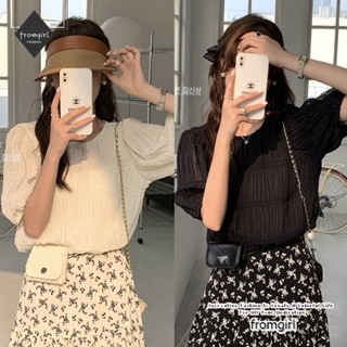 Áo Kiểu Tay Phồng Ngắn Cổ Chữ U Thời Trang Mùa Hè Xinh Xắn Cho Nữ