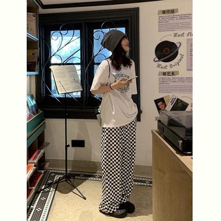 ☽Quần dài ống rộng họa tiết sọc caro cá tính cho nữ