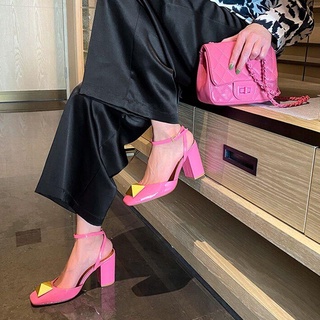 Giày cao gót mũi vuông đính đinh tán phong cách thời trang dành cho nữ