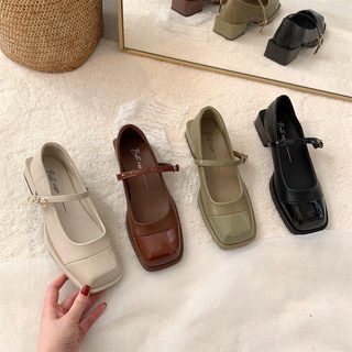 Giày Da Gót Dày Phối Khóa Cài Phong Cách Retro Pháp Thời Trang Xuân Thu Cho Nữ