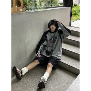 Áo Thun Tay Dài Cổ Tròn Dáng Rộng Màu Sắc Retro Dành Cho Nữ