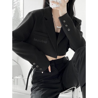 Áo Khoác Đen Dáng Ôm Ngắn Thời Trang Xuân Thu Hàn Quốc 2022
