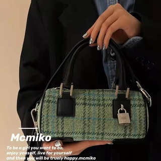 ✜✑Túi đeo chéo Mai Muke/Female hình trụ tròn màu sắc tương phản thời trang 2021