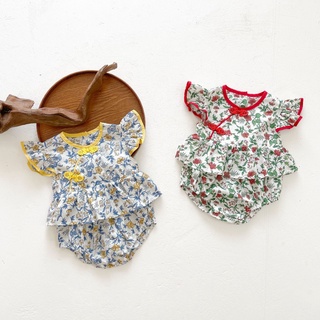 Bộ áo liền quần tay dài in hoa kiểu Hàn Quốc dễ thương dành cho bé