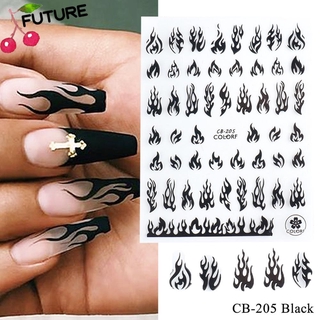 Hình Dán Trang Trí Móng Tay Hình Ngọn Lửa 3D Độc Đáo|Giấy Dán Móng Tay Màu Trắng Đen Nhiều Màu