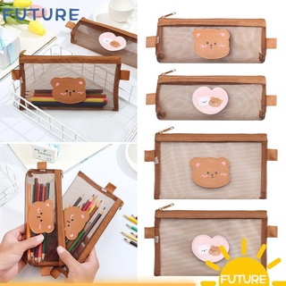 Túi Đựng Bút Trong Suốt Sức Chứa Lớn Họa Tiết Gấu Nâu Dễ Thương Cho Học Sinh